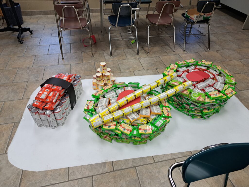 In December 2024, our school held a can drive to support local food banks. Each class participated in a “Canstruction” competition, where students built creative structures out of their collected cans before donating them. My class built a giant piece of sushi — a fun and collaborative project that encouraged creativity, teamwork, and community service.