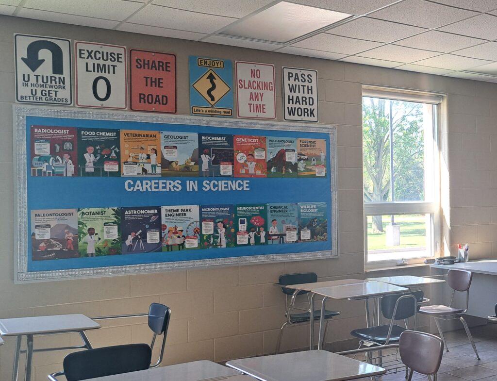 “Careers in Science” board in my Grade 10 science classroom, to inspire future career options.